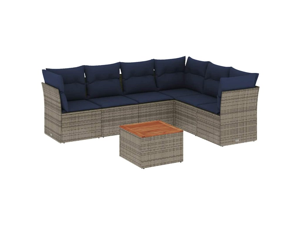 7dílná zahradní sedací souprava s poduškami šedá polyratan 3255991