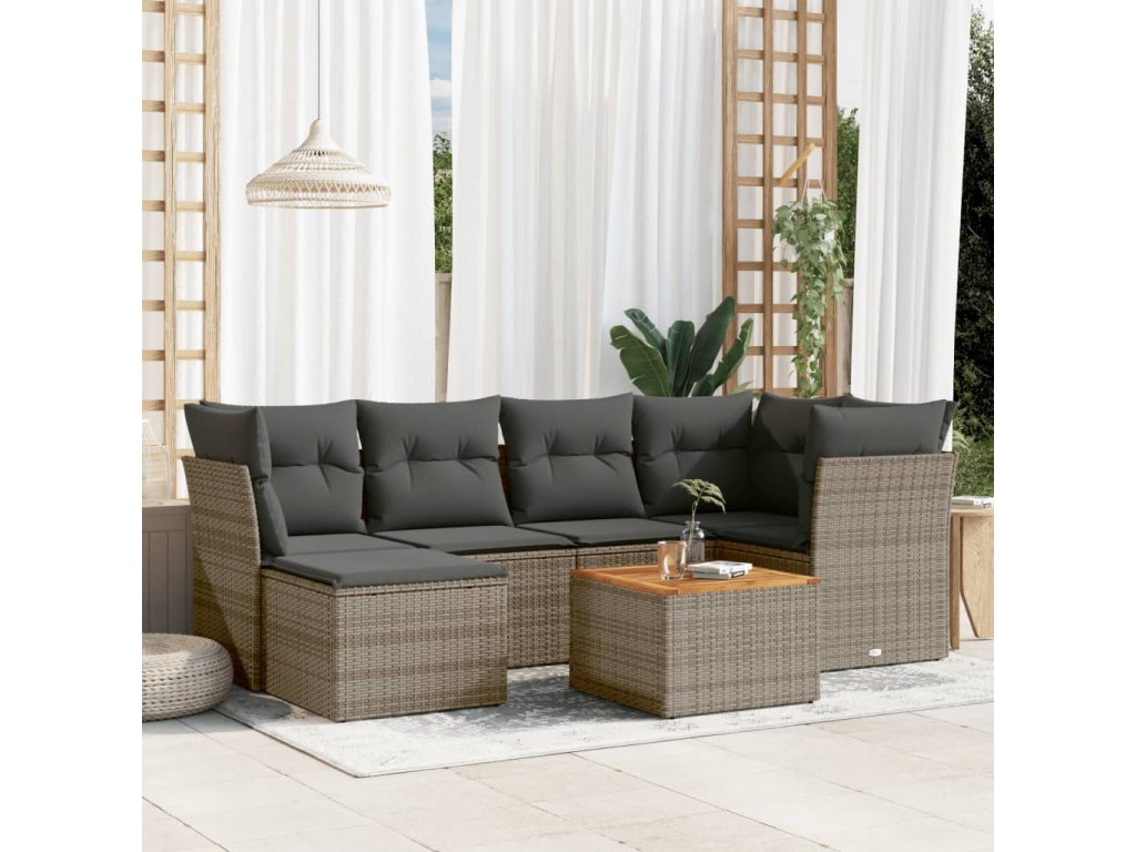 7dílná zahradní sedací souprava s poduškami šedá polyratan 3256081