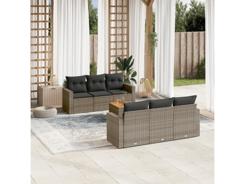 7dílná zahradní sedací souprava s poduškami šedá polyratan 3256347