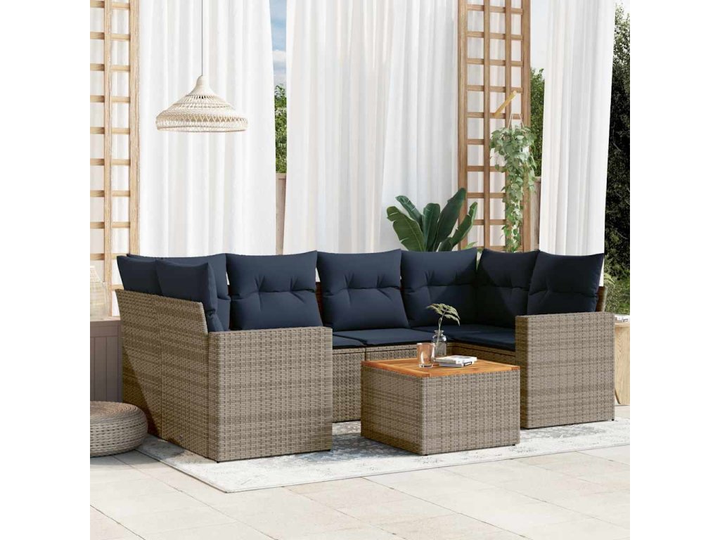 7dílná zahradní sedací souprava s poduškami šedá polyratan 3256355