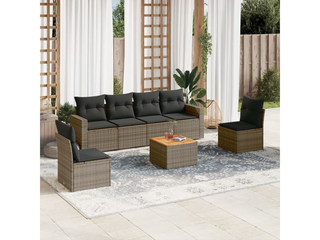 7dílná zahradní sedací souprava s poduškami šedá polyratan 3256403