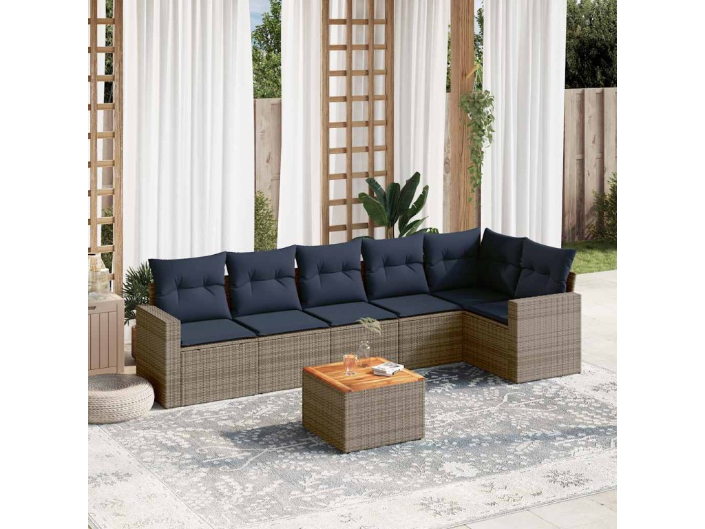 7dílná zahradní sedací souprava s poduškami šedá polyratan 3256467