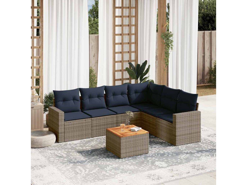 7dílná zahradní sedací souprava s poduškami šedá polyratan 3256474