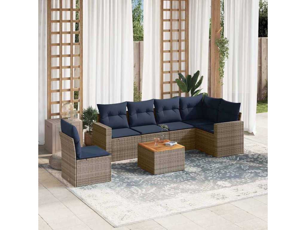 7dílná zahradní sedací souprava s poduškami šedá polyratan 3256481