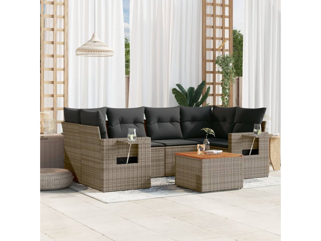 7dílná zahradní sedací souprava s poduškami šedá polyratan 3256795