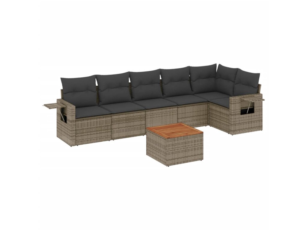 7dílná zahradní sedací souprava s poduškami šedá polyratan 3256907
