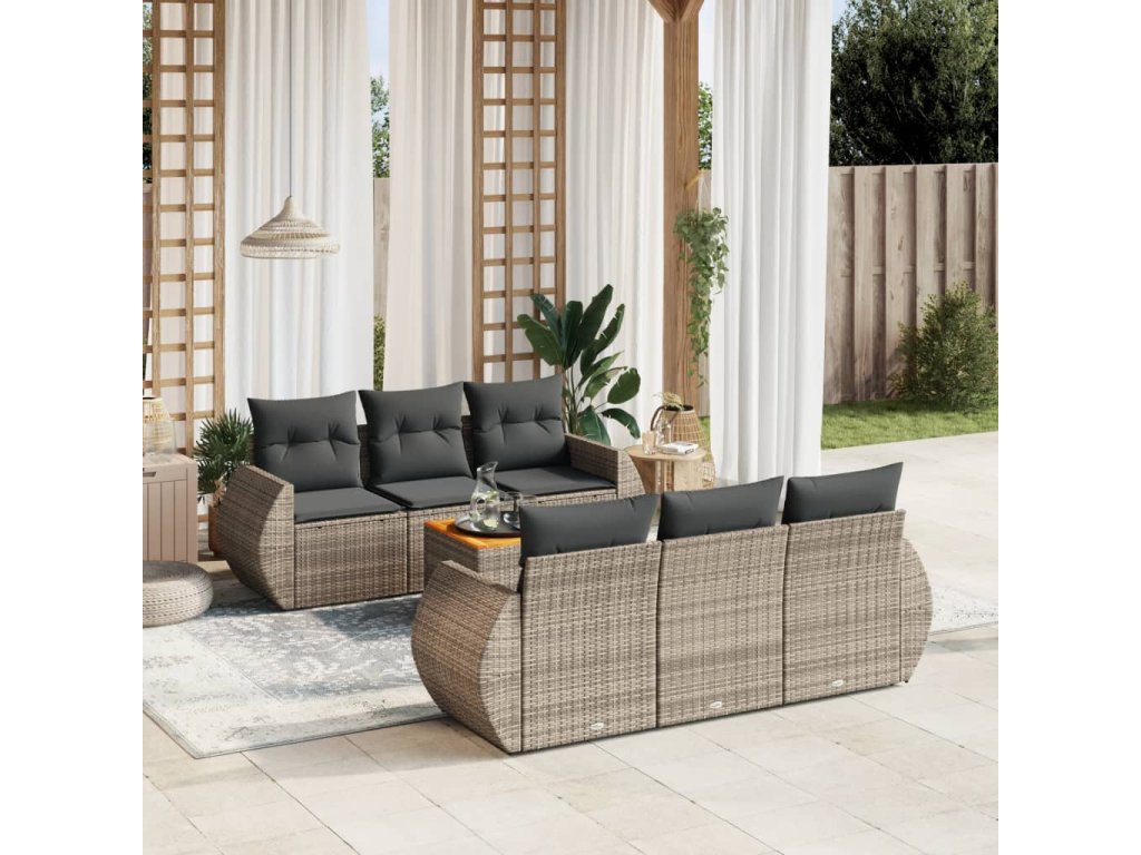 7dílná zahradní sedací souprava s poduškami šedá polyratan 3257229