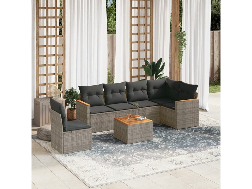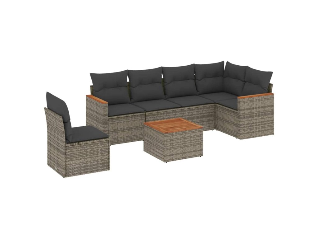 7dílná zahradní sedací souprava s poduškami šedá polyratan 3258427