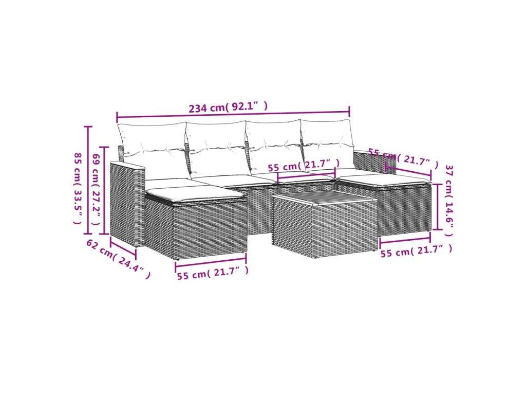 Tato zahradní sedací souprava je dokonalým doplňkem vaší zahrady, terasy nebo dvorku a poskytne vám pohodlné a příjemné místo, kde si můžete povídat s rodinou a přáteli nebo jen tak odpočívat a užívat si pobyt venku.