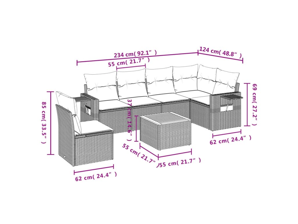 Tato zahradní sedací souprava je dokonalým doplňkem vaší zahrady, terasy nebo dvorku a poskytne vám pohodlné a příjemné místo, kde si můžete povídat s rodinou a přáteli nebo jen tak odpočívat a užívat si pobyt venku.