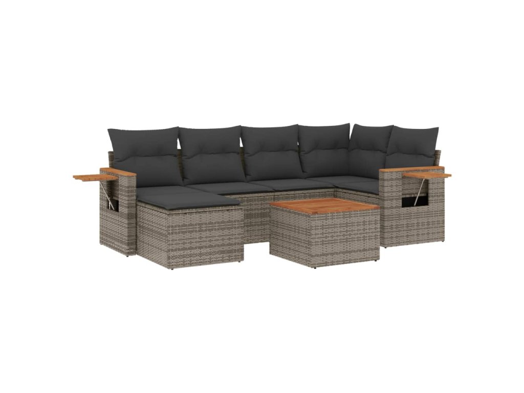 7dílná zahradní sedací souprava s poduškami šedá polyratan 3259428
