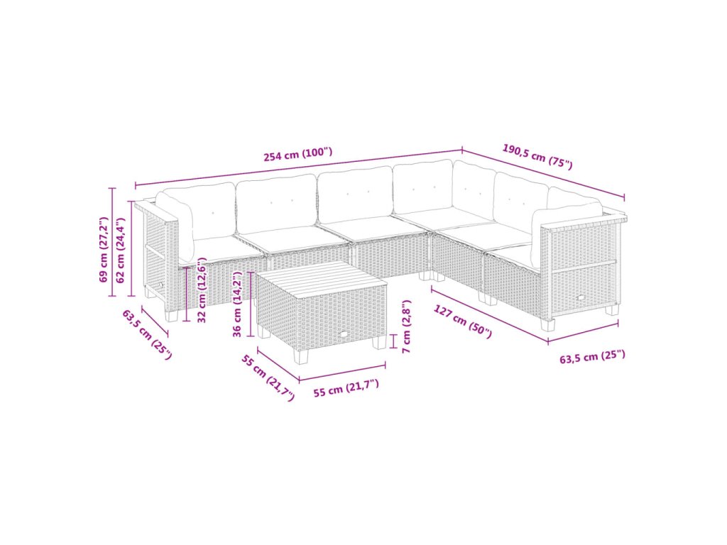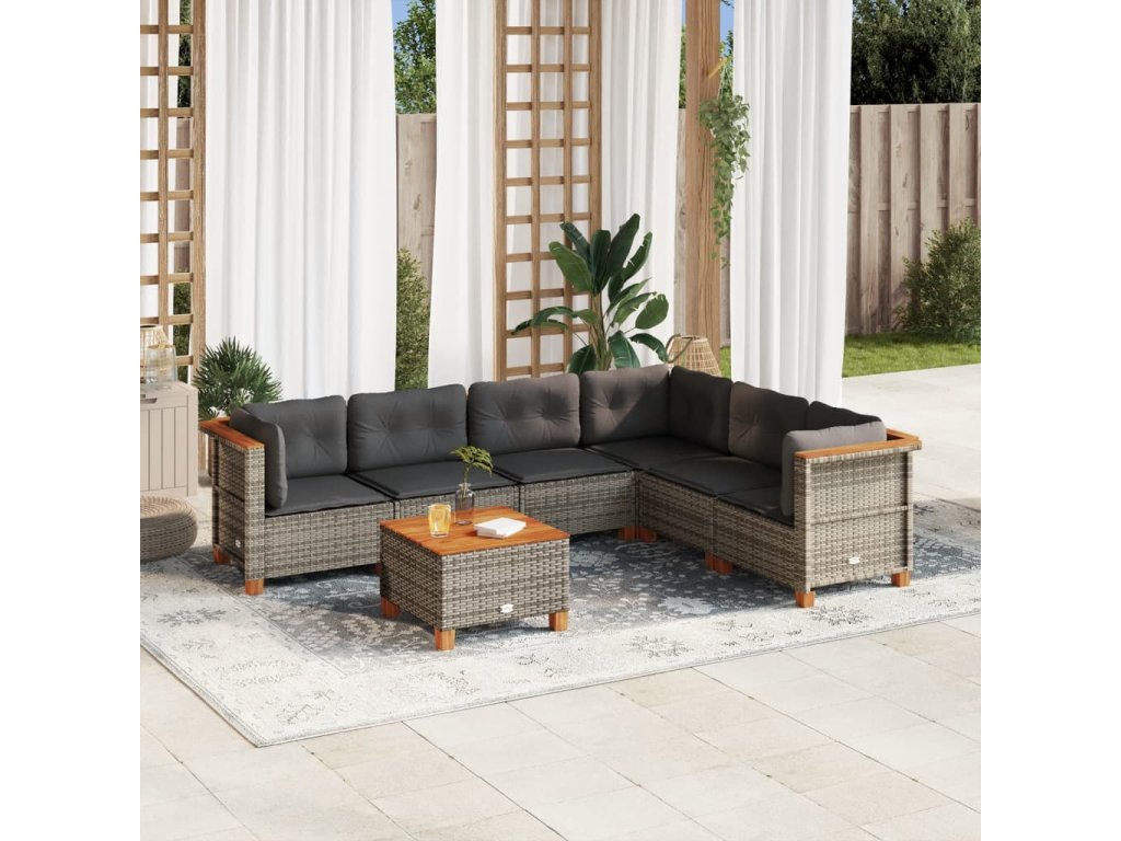 7dílná zahradní sedací souprava s poduškami šedá polyratan 3261864
