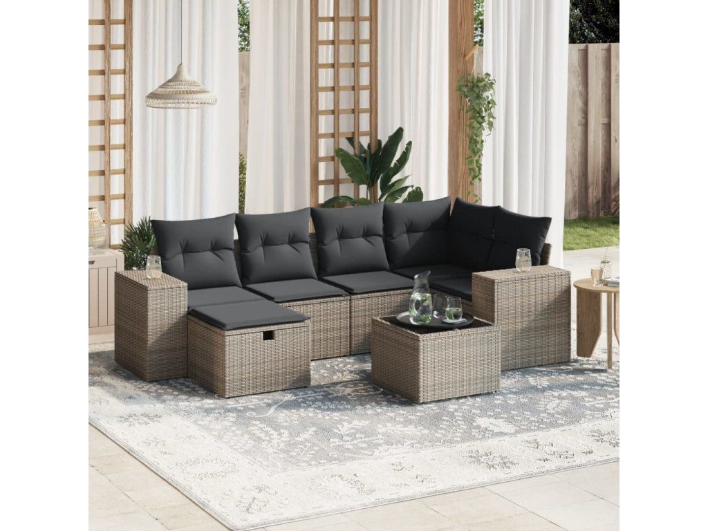 7dílná zahradní sedací souprava s poduškami šedá polyratan 3264426
