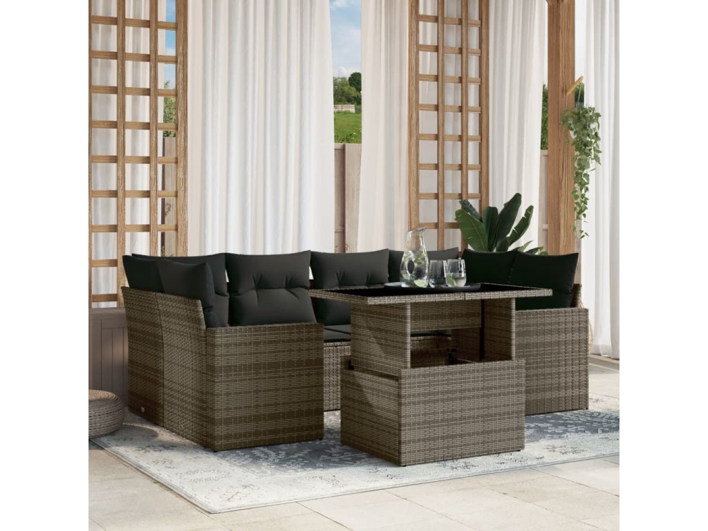 7dílná zahradní sedací souprava s poduškami šedá polyratan 3267130