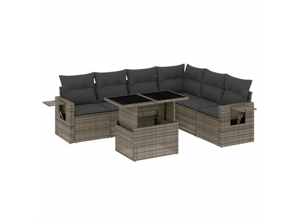 7dílná zahradní sedací souprava s poduškami šedá polyratan 3267930