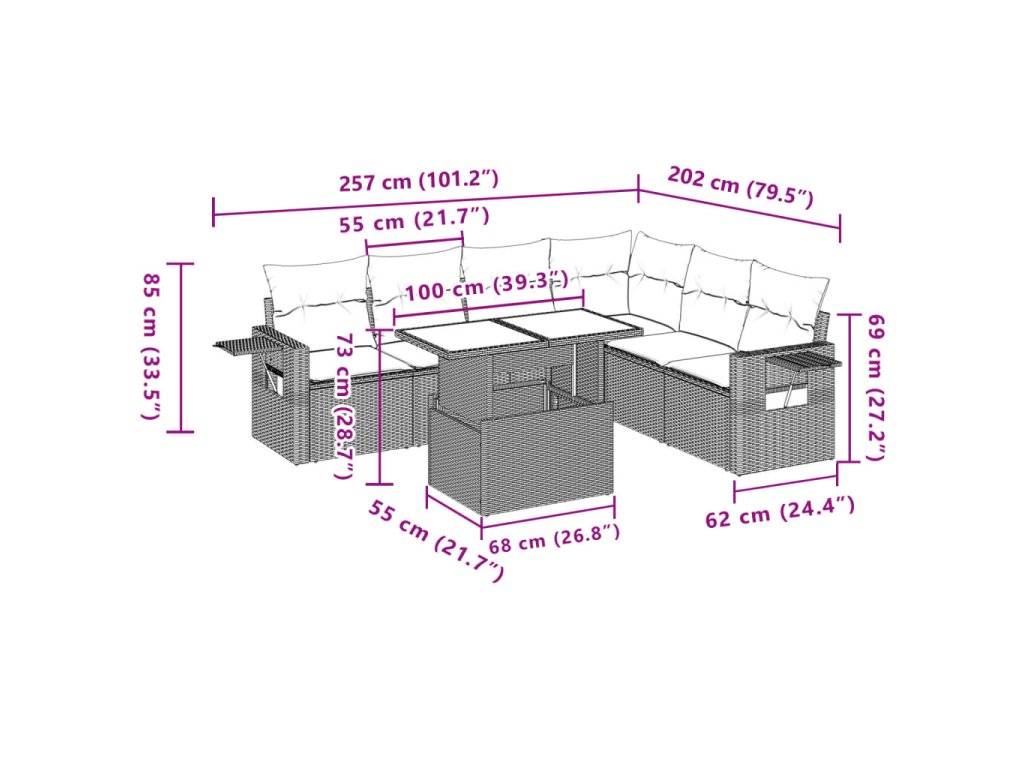 Tato zahradní sedací souprava je dokonalým doplňkem vaší zahrady, terasy nebo dvorku a poskytne vám pohodlné a příjemné místo, kde si můžete povídat s rodinou a přáteli nebo jen tak odpočívat a užívat si pobyt venku.