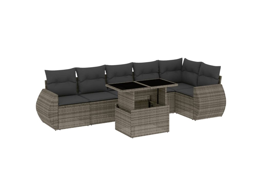 7dílná zahradní sedací souprava s poduškami šedá polyratan 3268550