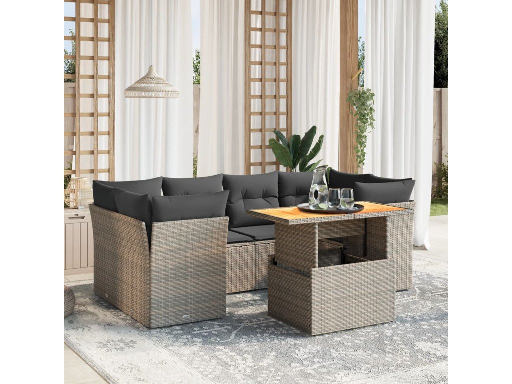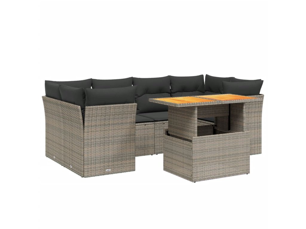 7dílná zahradní sedací souprava s poduškami šedá polyratan 3270689