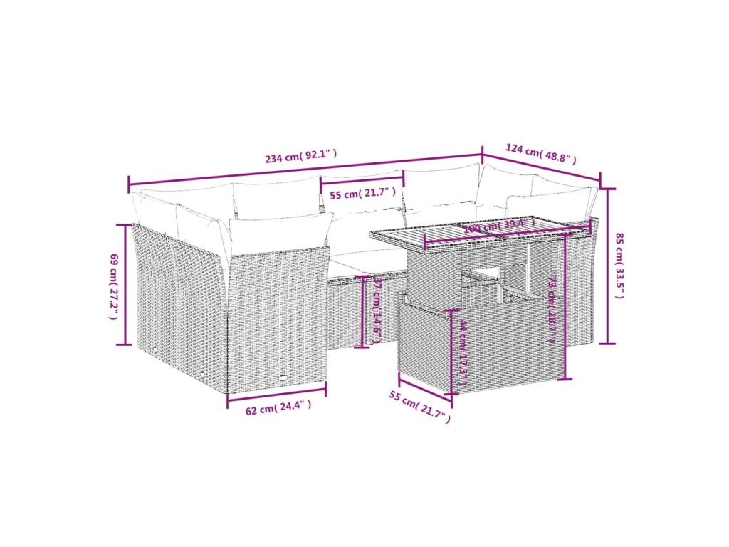 Tato zahradní sedací souprava je dokonalým doplňkem vaší zahrady, terasy nebo dvorku a poskytne vám pohodlné a příjemné místo, kde si můžete povídat s rodinou a přáteli nebo jen tak odpočívat a užívat si pobyt venku.