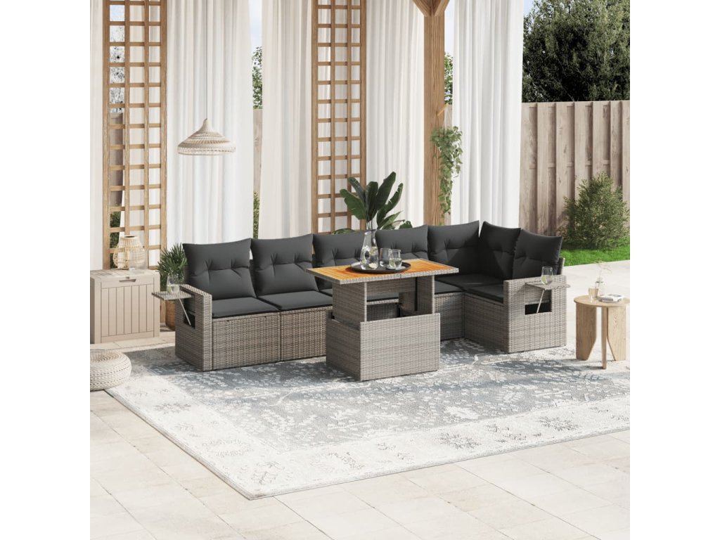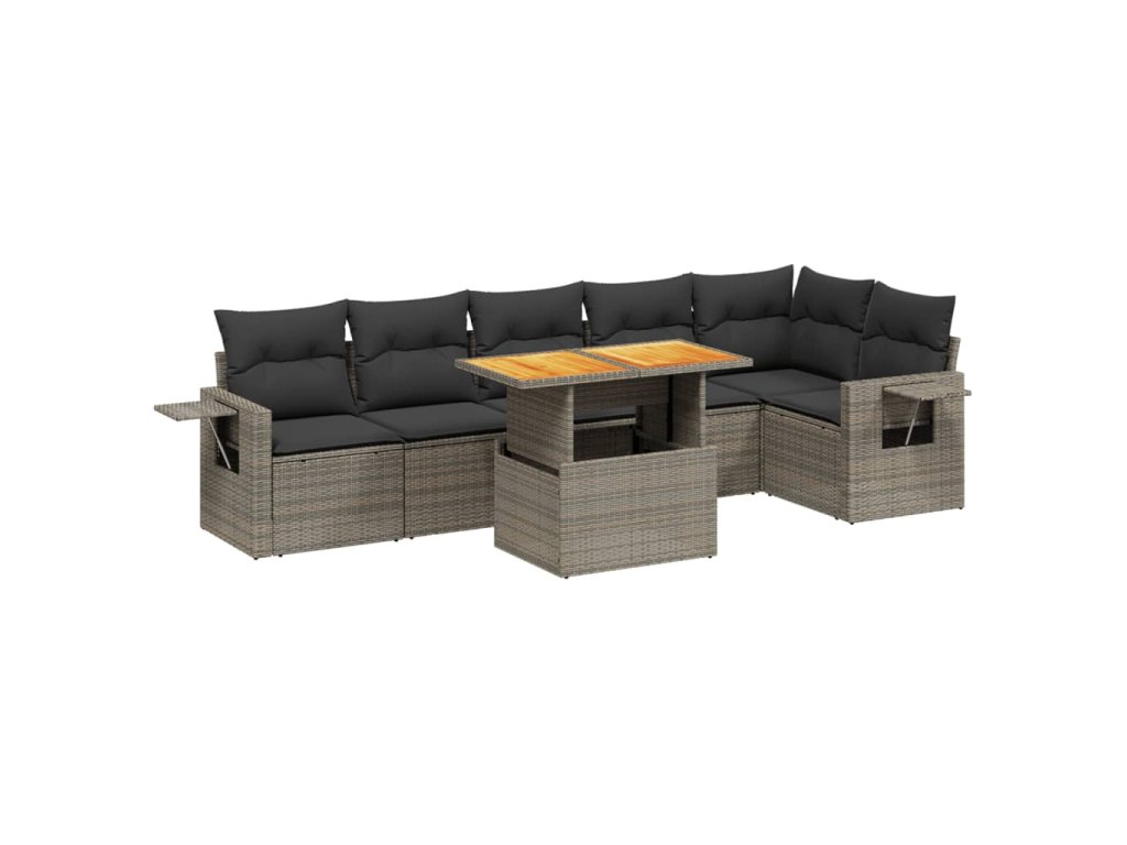 7dílná zahradní sedací souprava s poduškami šedá polyratan 3271767