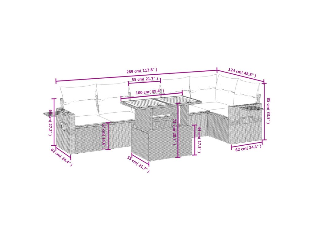 Tato zahradní sedací souprava je dokonalým doplňkem vaší zahrady, terasy nebo dvorku a poskytne vám pohodlné a příjemné místo, kde si můžete povídat s rodinou a přáteli nebo jen tak odpočívat a užívat si pobyt venku.