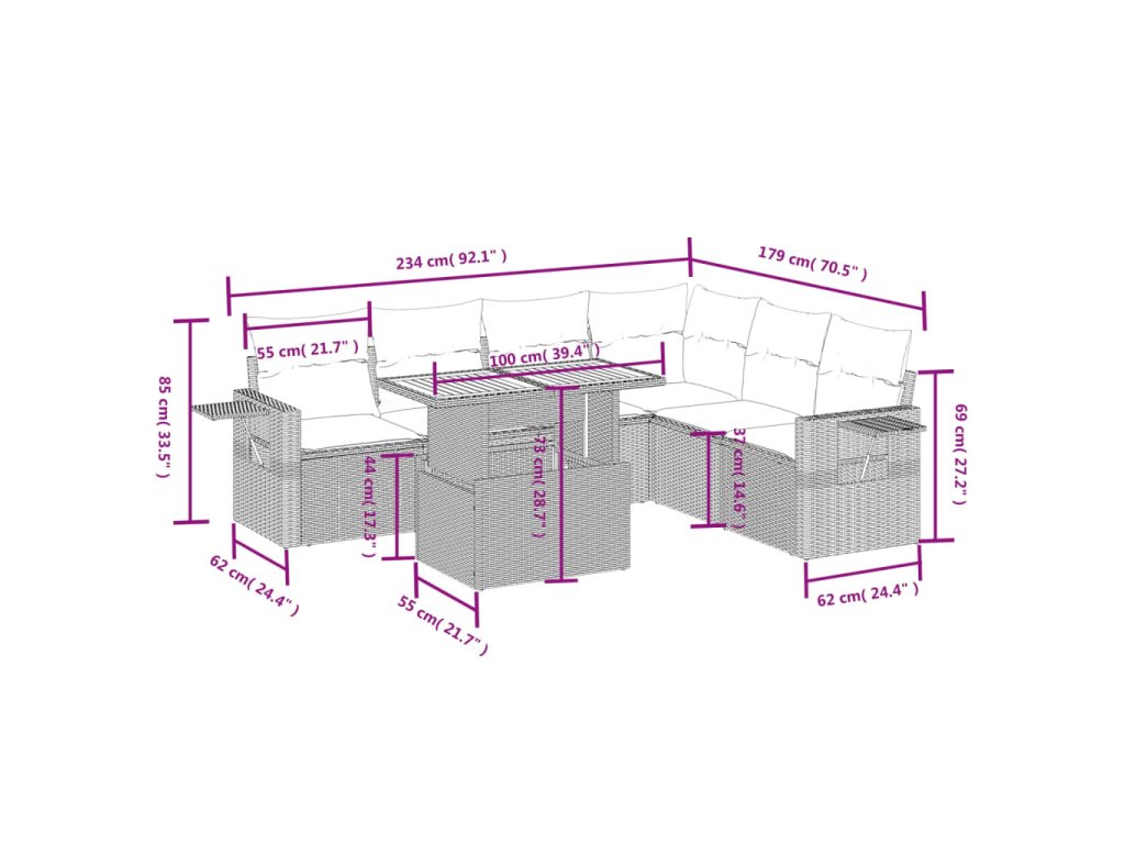 Tato zahradní sedací souprava je dokonalým doplňkem vaší zahrady, terasy nebo dvorku a poskytne vám pohodlné a příjemné místo, kde si můžete povídat s rodinou a přáteli nebo jen tak odpočívat a užívat si pobyt venku.