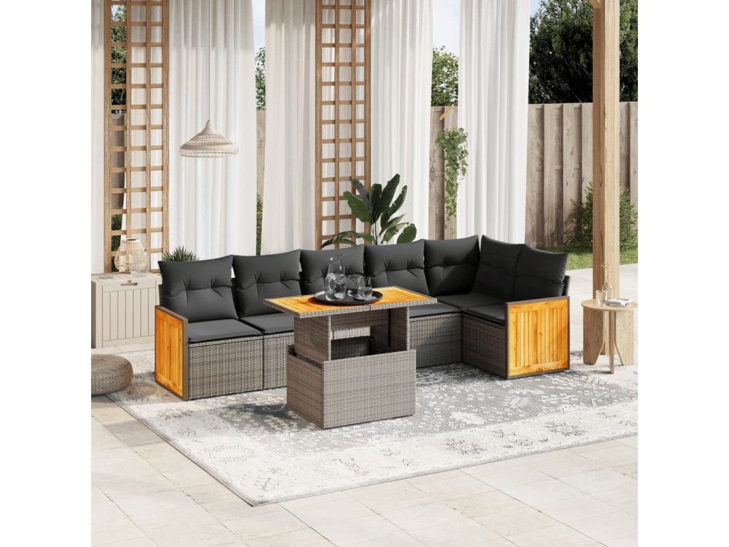 7dílná zahradní sedací souprava s poduškami šedá polyratan 3273972