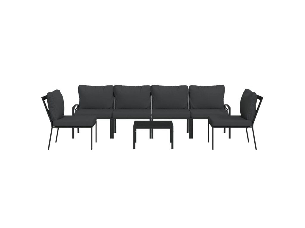 7dílná zahradní sedací souprava s šedými poduškami ocel 3187949
