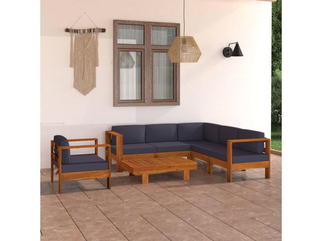 7dílná zahradní sedací souprava s tmavě šedými poduškami akácie 3057955