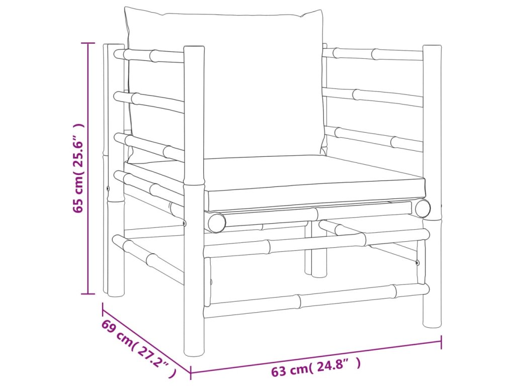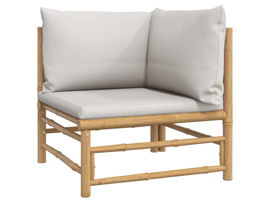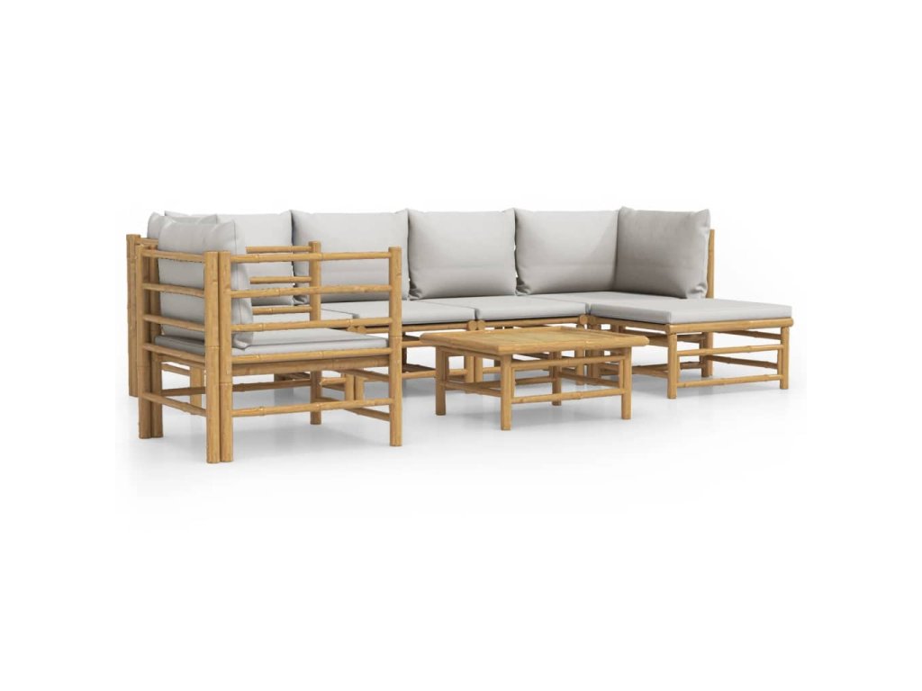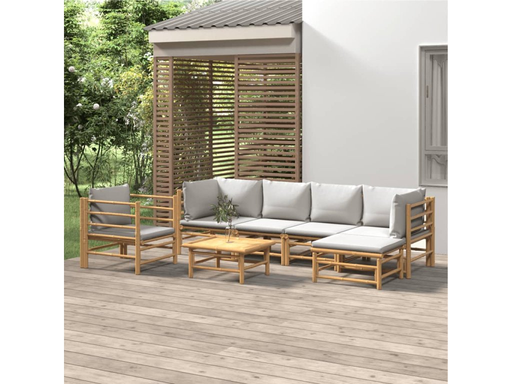 7dílná zahradní sedací souprava světle šedé podušky bambus 3155085