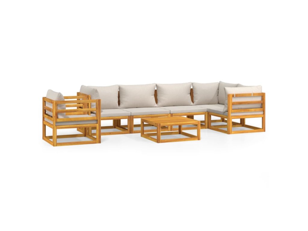 7dílná zahradní sedací souprava světle šedé podušky masiv 3155305