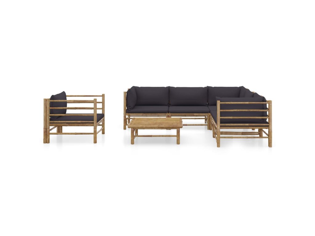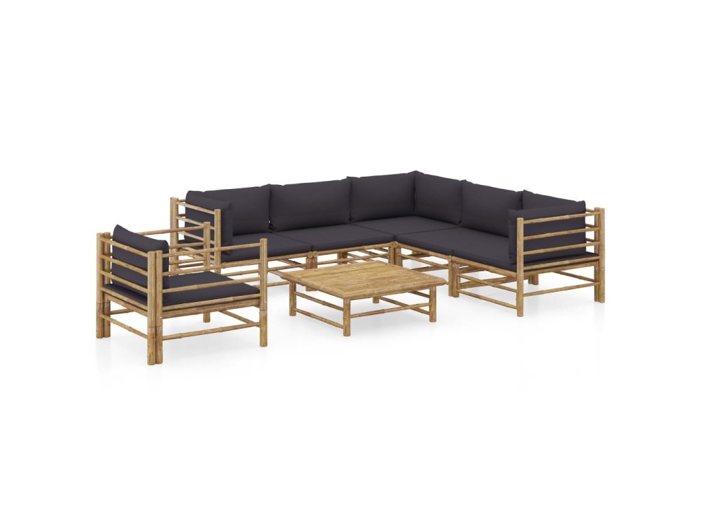 7dílná zahradní sedací souprava + tmavě šedé podušky bambus 3058216