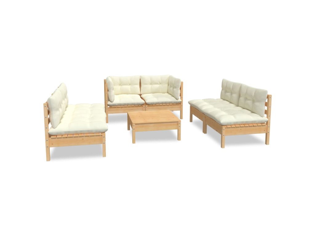 7dílná zahradní souprava krémové podušky masivní borovice 3096214