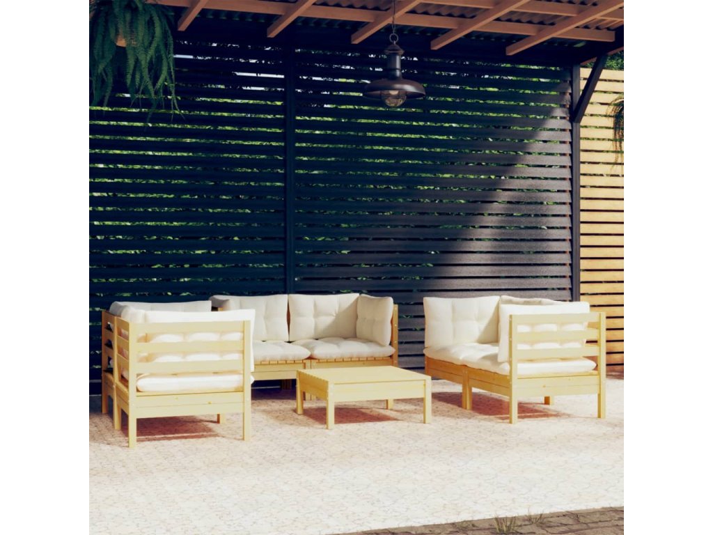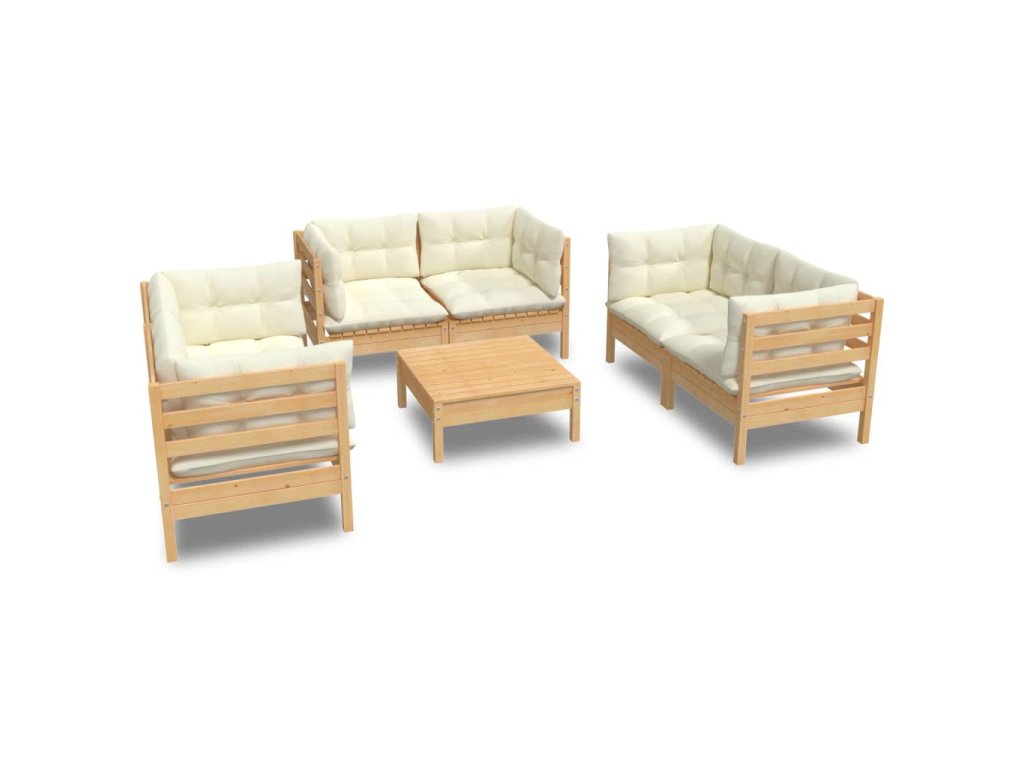 7dílná zahradní souprava krémové podušky masivní borovice 3096250