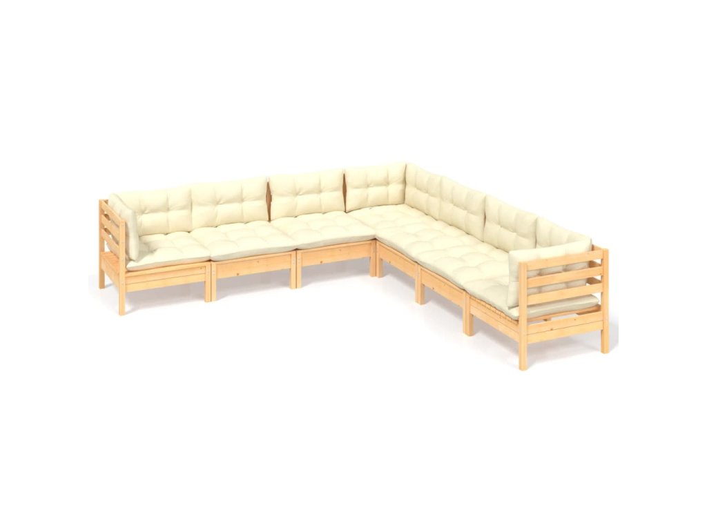 7dílná zahradní souprava krémové podušky masivní borovice 3096791