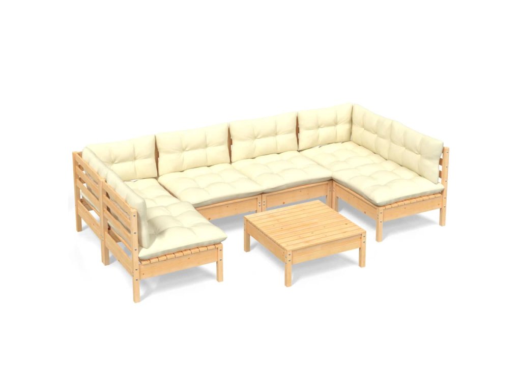 7dílná zahradní souprava krémové podušky masivní borovice 3097157