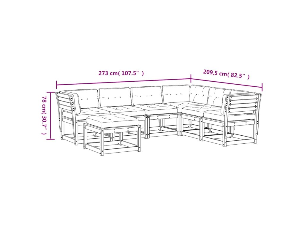 7dílná zahradní souprava s poduškami voskově hnědá borovice 3216932