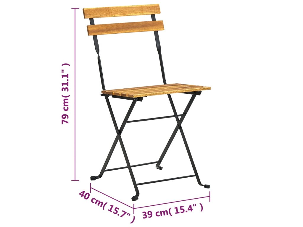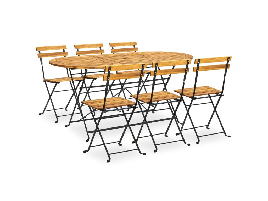 Tato zahradní jídelní souprava je vyrobená z masivního akáciového dřeva, tropického tvrdého dřeva, které je odolné vůči klimatickým vlivům a má dlouhou životnost. Robustní ocel zaručuje extra stabilitu. Stůl a židle se snadno čistí vlhkým hadříkem, a když je právě nepoužíváte, můžete je sklopit a ušetřit místo
