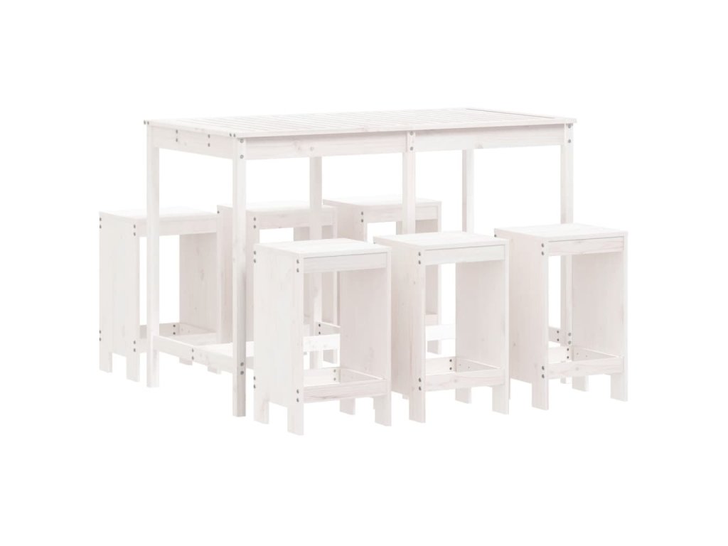 7dílný zahradní barový set bílý masivní borové dřevo 3157752