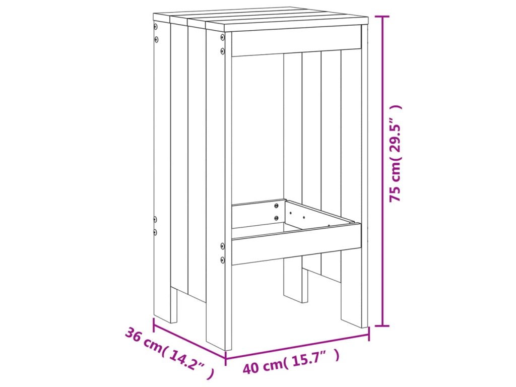 - Rozměry barové stoličky (každý kus): 40 x 36 x 75 cm (D x Š x V)