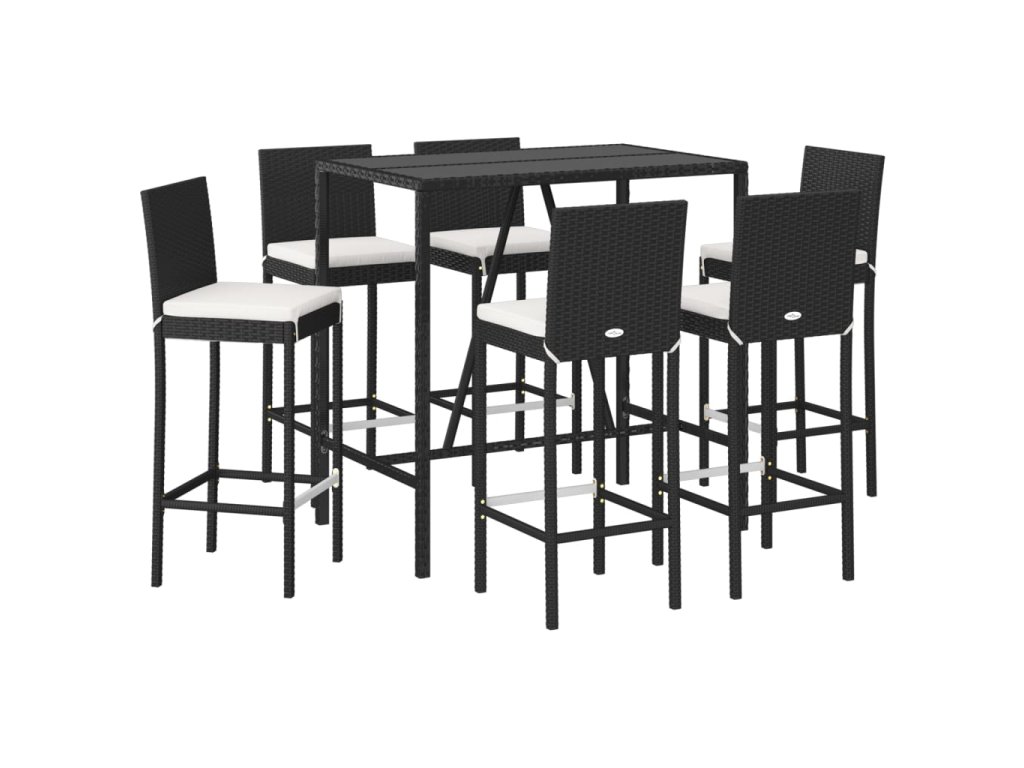 7dílný zahradní barový set s poduškami černý polyratan 3187645
