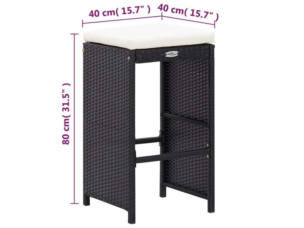 7dílný zahradní barový set s poduškami polyratan černý 49560