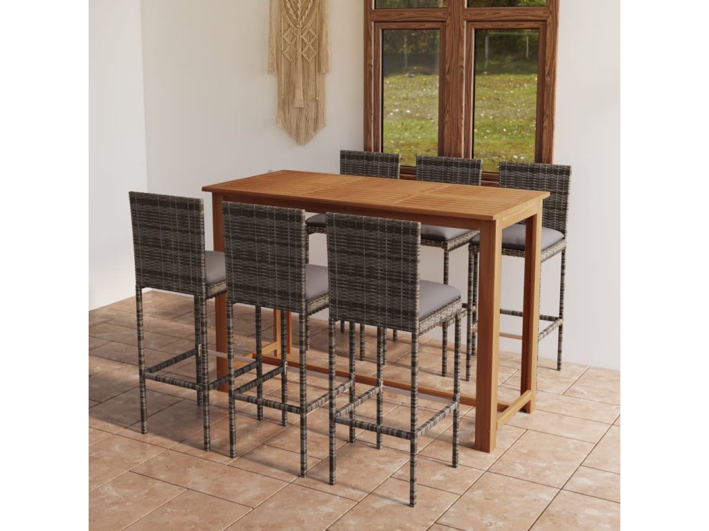 7dílný zahradní barový set s poduškami šedý 3068007