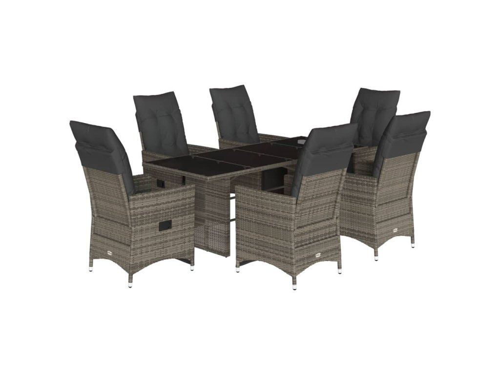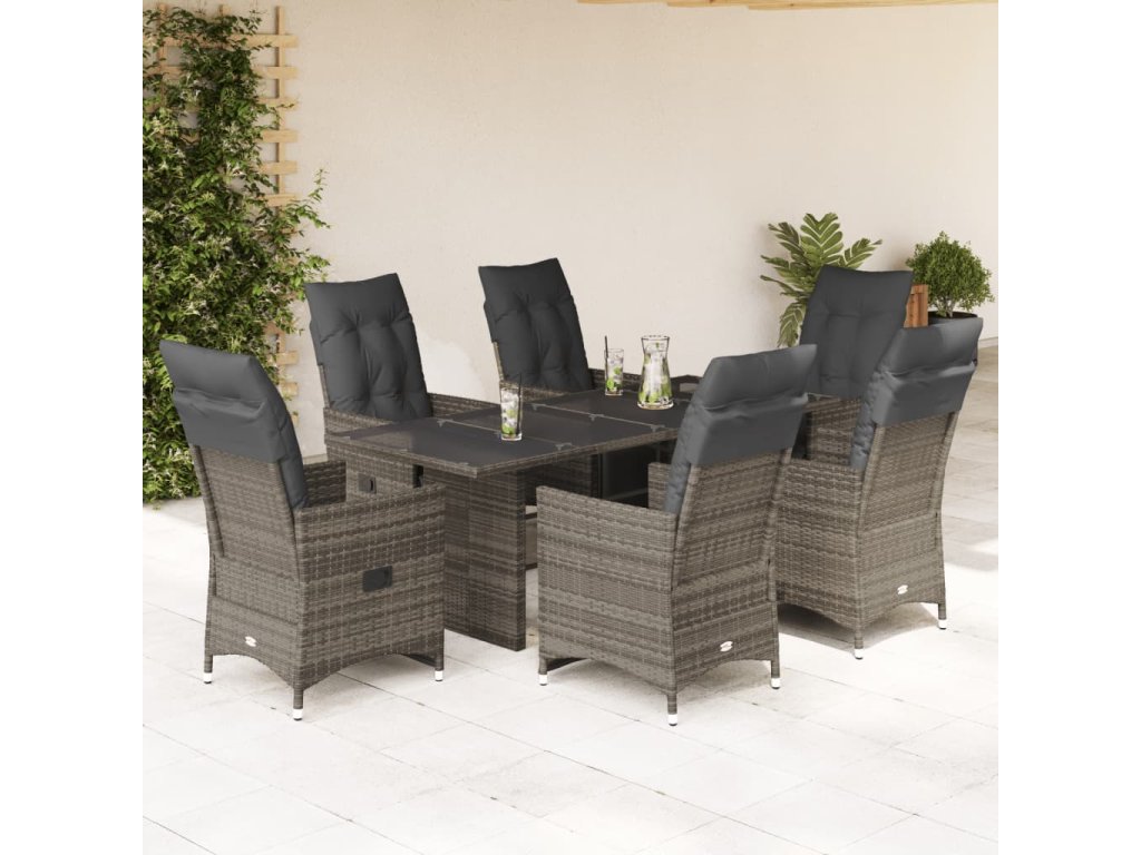 7dílný zahradní bistro set s poduškami šedý polyratan 3276899