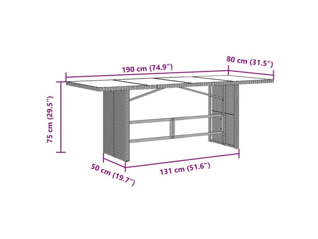 - Skleněná deska stolu: Deska venkovního stolu je zhotovena ze silného a odolného tvrzeného skla, takže ji snadno očistíte vlhkým hadříkem a zároveň do vašeho venkovního prostoru vnese nádech elegance.