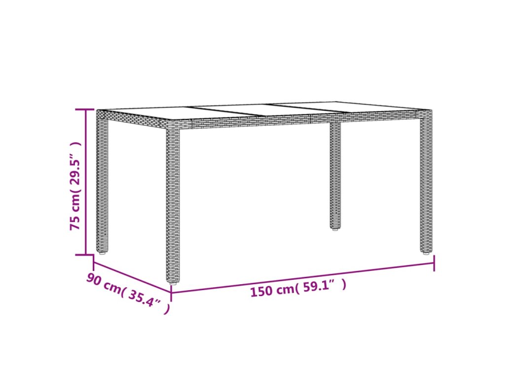 - Materiál: PE ratan, práškově lakovaná ocel, masivní akáciové dřevo s olejovou povrchovou úpravou