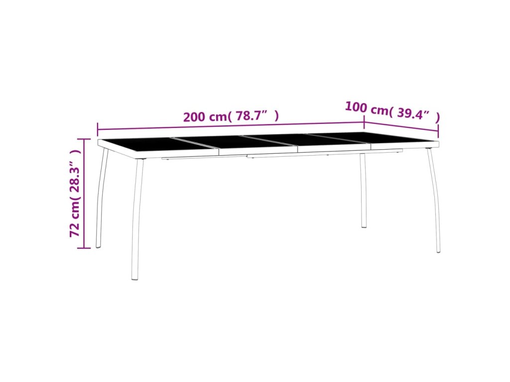 - Rozměry: 200 x 100 x 72 cm (D x Š x V)