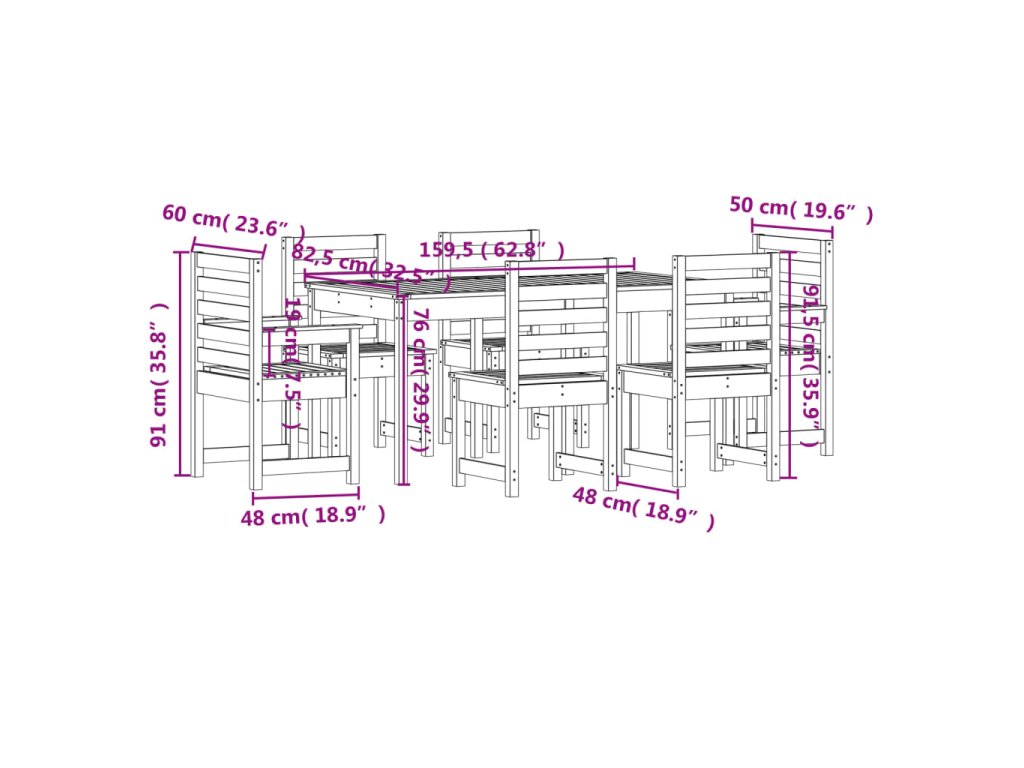 7dílný zahradní jídelní set bílý masivní borové dřevo 3154708