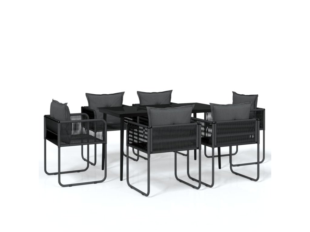 Zahradní jídelní set má práškově lakovaný ocelový rám, takže je robustní a stabilní a ideální pro venkovní použití. Hladká skleněná deska stolu se snadno čistí vlhkým hadříkem a skvěle vám poslouží k podávání jídla a pití nebo k vystavení různých dekorativních předmětů. Židle jsou vyrobené z PE ratanu, jsou proto lehké a voděodolné. Polštáře za záda vám navíc při sezení zajistí maximální pohodlí, a zpříjemní vám tak váš odpočinek.