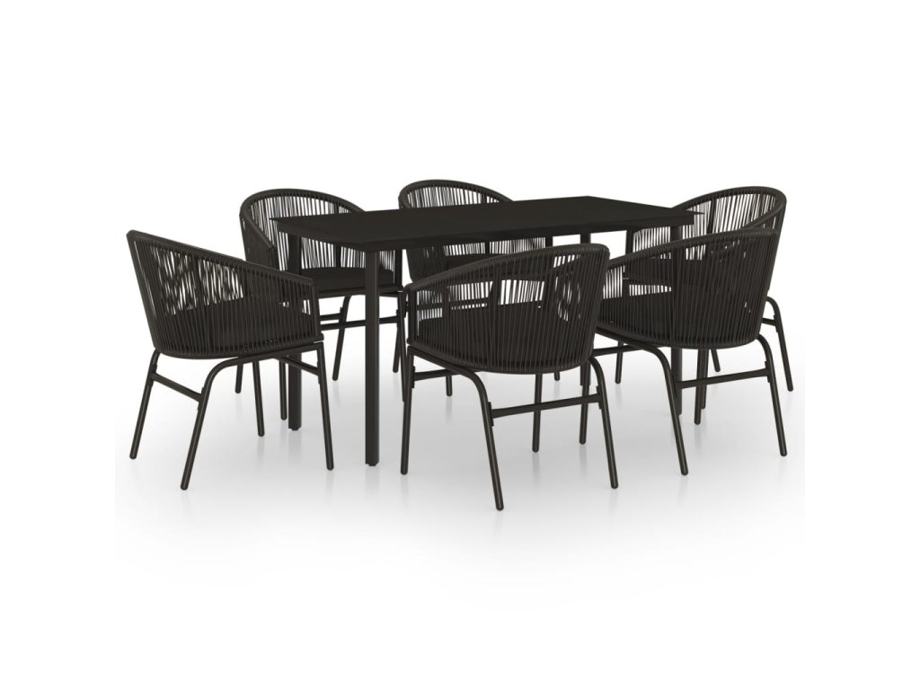 Zahradní jídelní set má práškově lakovaný ocelový rám, takže je robustní a stabilní a ideální pro venkovní použití. Hladká skleněná deska stolu se snadno čistí vlhkým hadříkem a skvěle vám poslouží k podávání jídla a pití nebo k vystavení různých dekorativních předmětů. Židle jsou vyrobené z PVC ratanu, jsou proto odolné a výborně vzdorují UV záření i špatnému počasí. Každá z nich je navíc opatřená odnímatelnou hustě polstrovanou poduškou, a zpříjemní vám tak váš odpočinek.